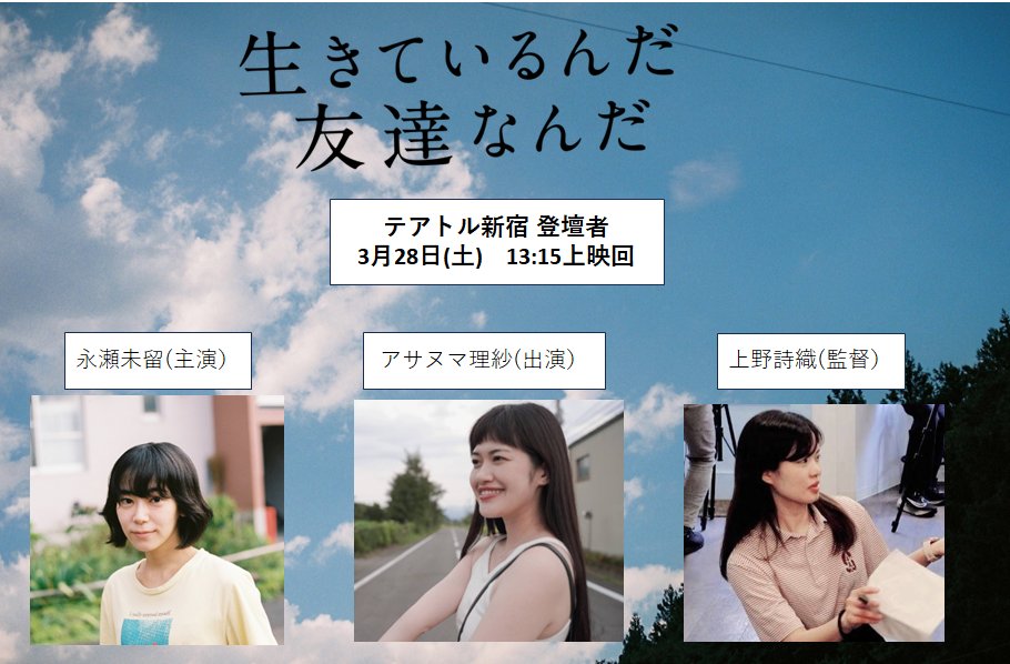 3月28日(土)テアトル新宿にて「生きているんだ友達なんだ」公開記念舞台挨拶決定